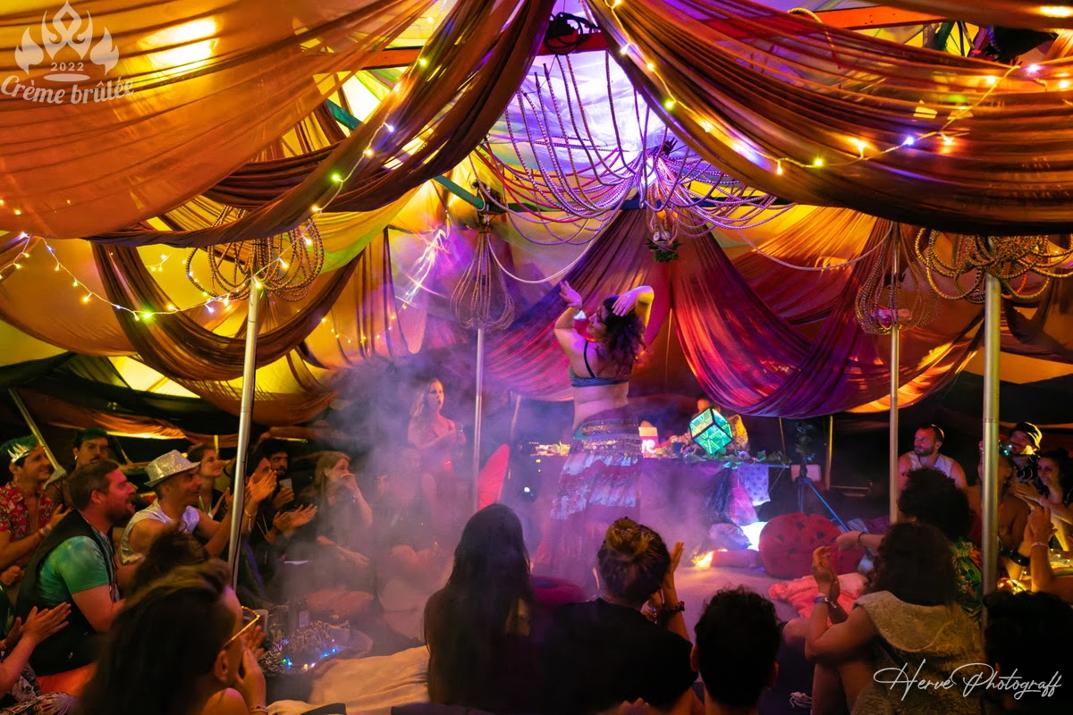 Nous nous réunissons lors d'événements tels que le Nowhere (en Espagne), Crème Brûlée (en France), et partout ailleurs pour célébrer notre communauté, liée par les valeurs et principes du Burning Man: